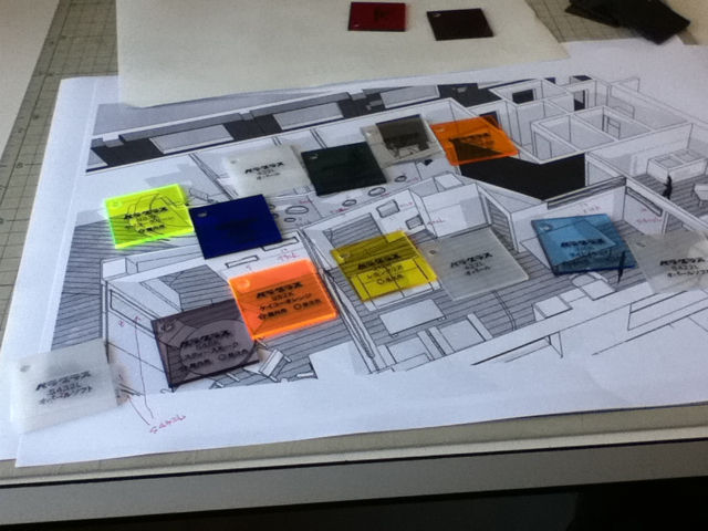 昨日は現場でクリニックの色決めの打ち合わせ。今回はアクリル板の小窓が沢山あり、それが多彩な色で構成されています。写真の通りです。