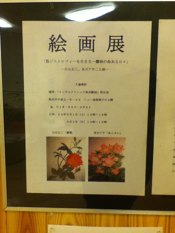 同時に開催されていた筋ジストロフィー患者さんの絵画展を見せて頂き、作品のすばらしさはもちろんですが当初のコンセプト通り、ギャラリー空間にも変じる待合室を体感する事が出来たのは嬉しかったです。